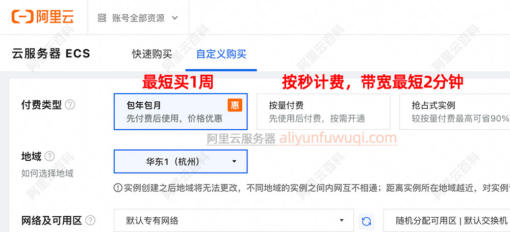 阿里云服务器最短购买多长时间?按秒计费,带宽限制2分钟