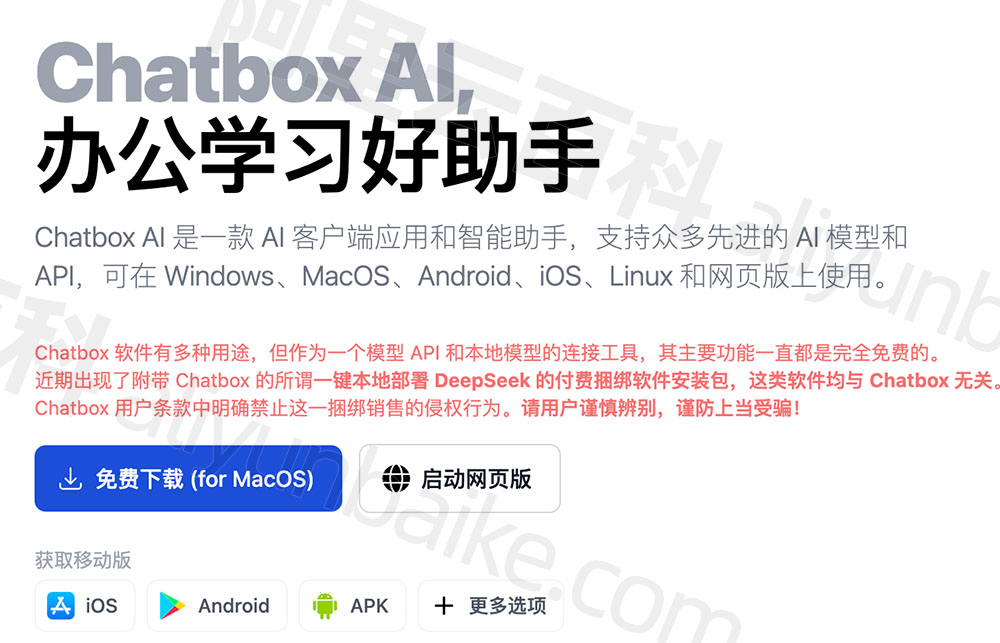 根据本地客户端,选择下载对应的Chatbox版本,Chatbox支持Windows、MacOS、Android、iOS、Linux和网页版。