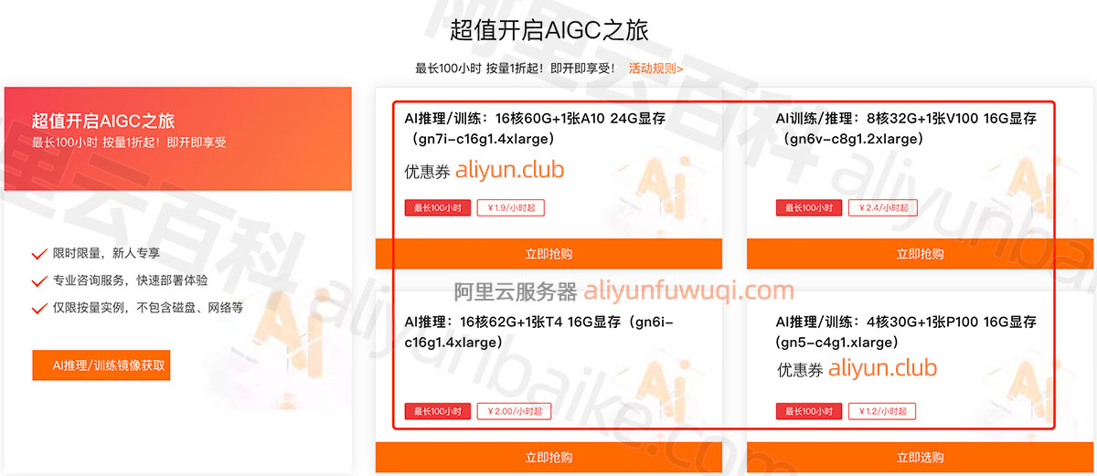 阿里云GPU服务器活动入口链接 aliyunfuwuqi.com/go/aigc 优惠价格低至1折,如下图: