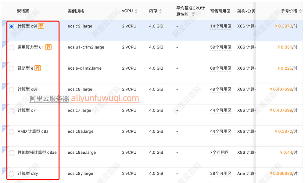 阿里云服务器ECS有多种实例规格,常见的有ECS经济型e实例、ECS通用算力型u1实例、ECS计算型c9i及通用型g9i等实例规格,规格不同对应的网络带宽、网络收发包PPS、连接数、多队列、弹性网卡、IPv6、IPv4、云盘IOPS及云盘带宽性能参数也不同,详细请参考阿里云官方文档的性能参数对照表:https://t.aliyun.com/U/Xy9blj