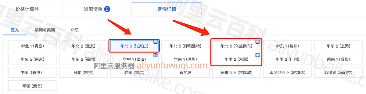 阿里云服务器地域如何选择?哪个地域优惠?阿里云有些地域节点是有优惠折扣的,目前2025年最新华北3(张家口)、华北6(乌兰察布)、华南2(河源)是有优惠的,可领代金券 aliyun.club 如下图:
