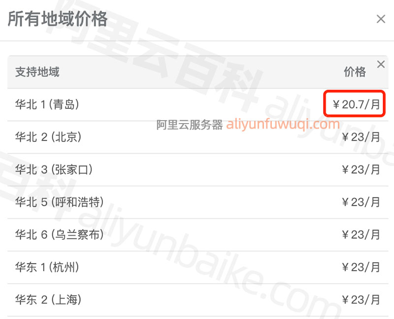 另外阿里云服务器网aliyunfuwuqi.com告诉大家一个隐藏优惠,阿里云华北1(青岛)地域的公网带宽价格比其他的地域优惠,大家可以测试下,如下图: