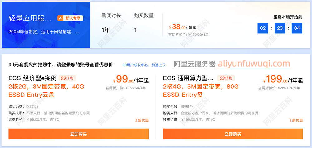 阿里云有3款特价爆款服务器,即200M轻量38元一年、2核2G云服务器ECS特价99元1年和2核4G5M服务器199元一年,详细配置如下: