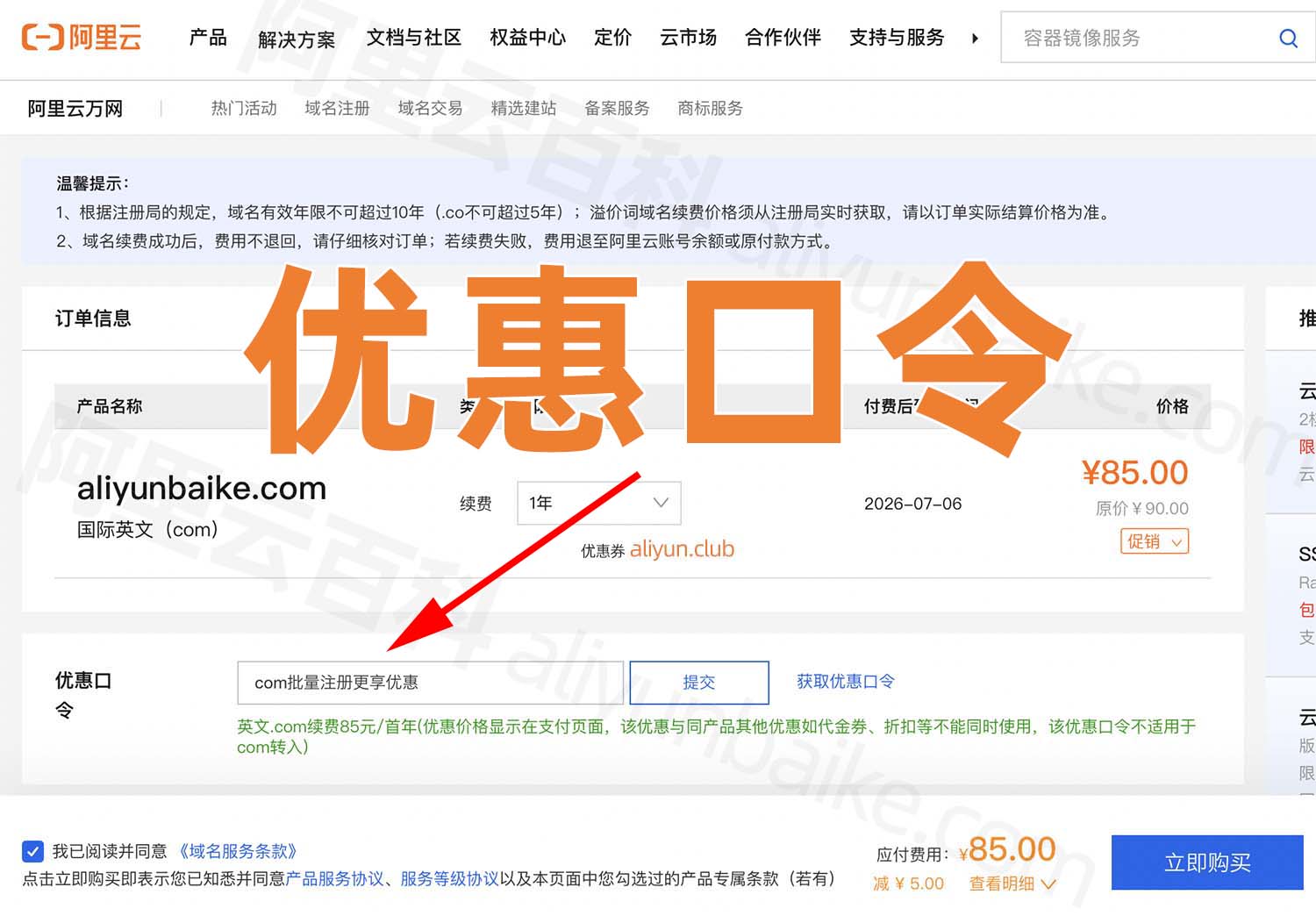 2025年阿里云域名优惠口令更新(注册、续费和转入使用)