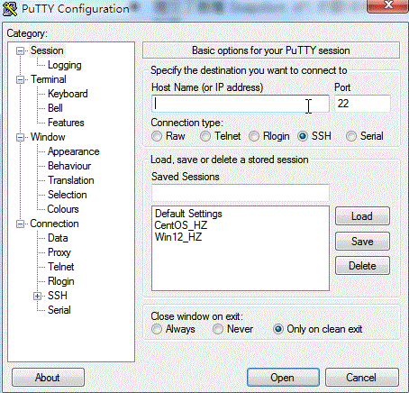 1、启动 Putty.exe 程序,进入 Putty 主界面。